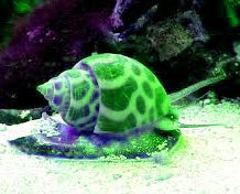 Orange Marble Snails lives in the bottom substrate and searches the sand for detritus, the mortal remains of expired aquarium life and their favorite treat... bristleworms!